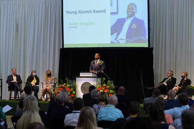 Aaron Slaughter '10 was recognized with the Young Alumni Award in 2020.