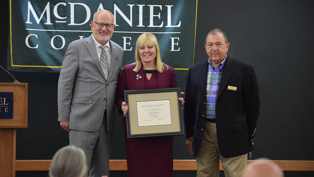 The McDaniel College Board of Trustees presented its prestigious Trustee Alumni Award to Anne Arundel Community College President Dawn Lindsay, who earned a bachelor’s degree in Psychology and Social Work in 1981 and a master’s degree in Counselor Education in 1982.