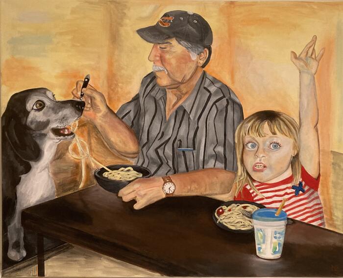 Camellia Codd, senior Art major from Mount Airy, Maryland, who works with traditional mediums, such as watercolor, graphite, and pen and ink, but enjoys experimenting and exploring the creative process of various artistic avenues. She said, “My work is rooted in memory and identity. I am inspired by the world around me and the small details that shape my sense of home—whether that be objects, places, people, or animals. My works are deeply tied to simple childhood moments, capturing a sense of nostalgia not only through imagery but also through the memories of the time in which I created them.”