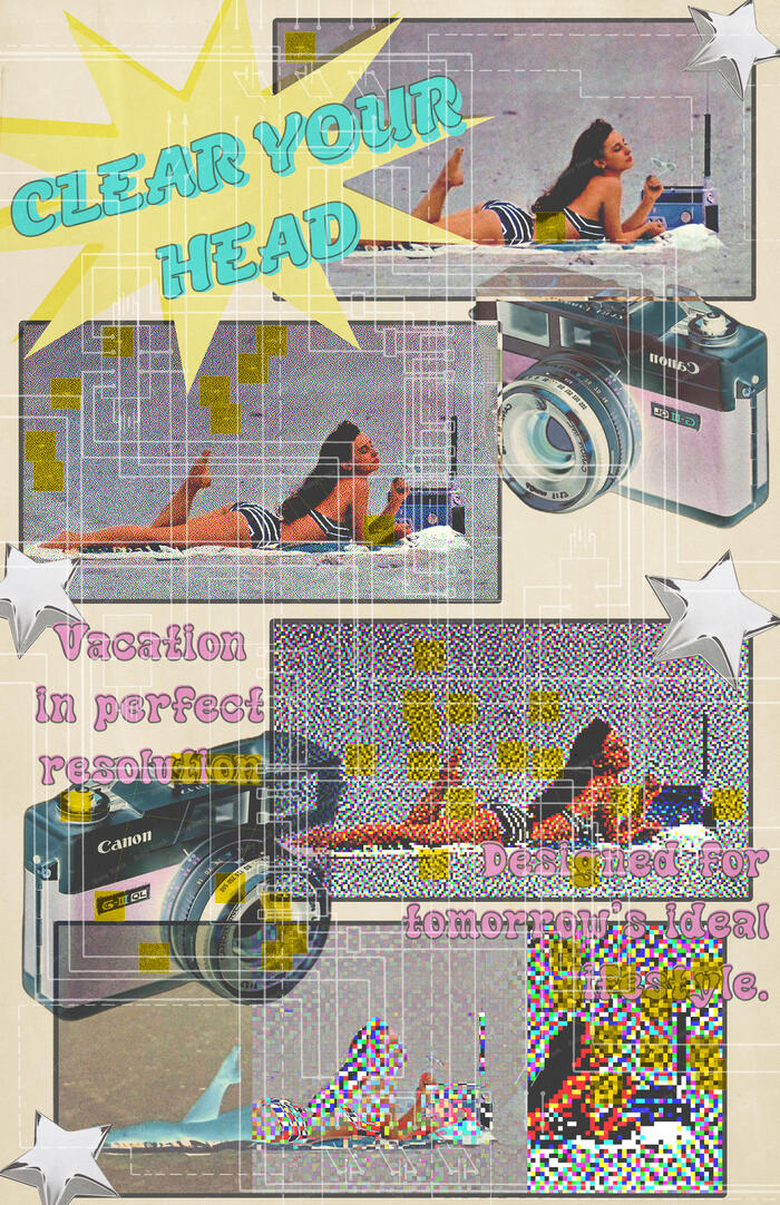 Alena Hemphill is a senior Art major from Randallstown, Maryland. A large part of Hemphill’s work draws inspiration from advertising across decades, “looking back at how that side of visual culture has shaped our understanding of our desires and what we believe our ‘perfect’ future to look like,” according to Hemphill. “To me, each era presents its own version of optimism, progress, and ideal living, communicated through imagery, color palettes, and design language. By blending these influences, I want to explore how advertisements not only sell products but also sell lifestyles and aspirations.”