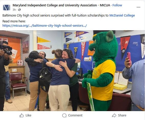 • Baltimore City high school seniors surprised with full-tuition scholarships to McDaniel College