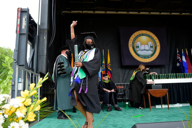 “Today, we celebrate not only your many achievements here on the Hill but also the incredible commitment and resilience that got you to this very moment,” Casey said. “There’s no doubt you have had an extraordinarily challenging year – one that required you to reimagine how you learn, make necessary sacrifices for the good of our community and learn to be comfortable in the uncomfortable. And yet, you pushed through. You persevered. It may not have always been easy, or pretty, but you are here and you are ready to get your degree. Class of 2021, this is your day. Welcome to your ceremony.”