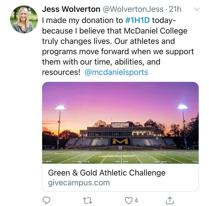 The first-ever One Hill, One Day, was a resounding success due to the overwhelming support of alumni, parents, faculty, staff, students, and friends. The entire McDaniel community came together to exceed the donor goal of 1,000 donors with 1,429 total and raised $228,136—the most ever on a single day of giving.