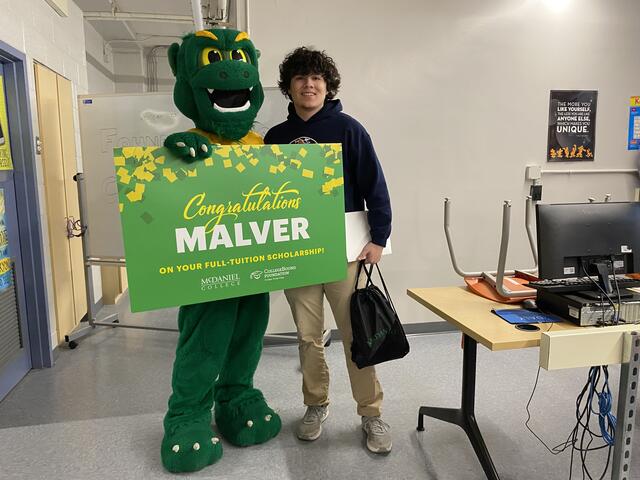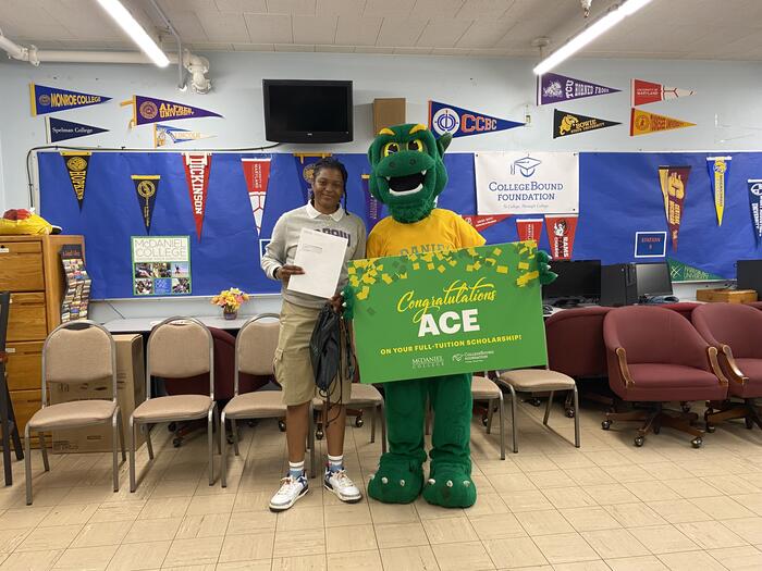 Representatives from McDaniel, including the Green Terror, Baltimore City Public Schools, and the CollegeBound Foundation, made the announcements at the students' high schools—Frederick Douglass High School, Baltimore Polytechnic Institute, Western High School, Baltimore Leadership School for Young Women, and Patterson High School.