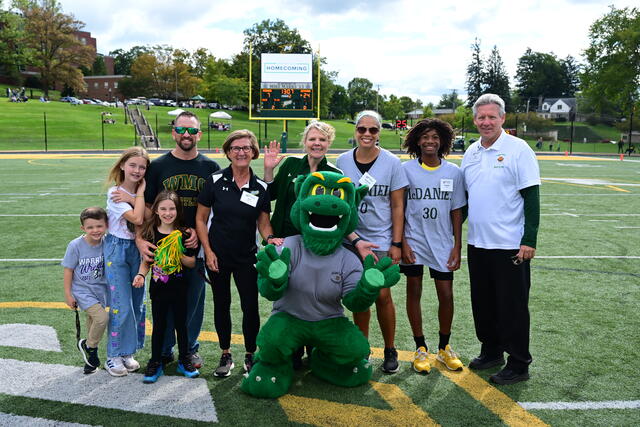 McDaniel's beloved Green Terror mascot celebrated its 100th birthday at Homecoming 2023, complete with the singing of "Happy Birthday" at halftime.
