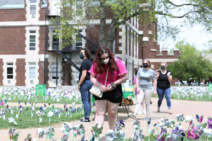 There were 2,374 pinwheels set up throughout the college's Red Square to represent donors in the last year with $6.7 million in gifts and pledges raised, including more than $1.6 million in documented bequest intentions, and $114,764 raised for the Emergency Relief Fund. Throughout the day, students were able to sign postcards and make videos to personally thank donors.