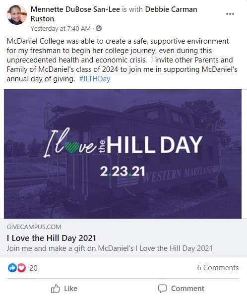 I Love the Hill Day was a resounding success thanks to the alumni, students, faculty, staff, parents, and friends who came together in support of McDaniel. Together, we exceeded our goal of 725 donors, ensuring we can support every student on the Hill today and for years to come. In fact, we raised more than $150,000, which is more funds than ever before on I Love the Hill Day.
