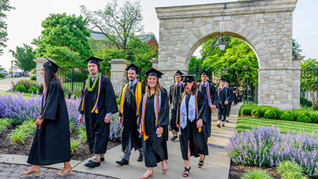 Prior to the event, graduating seniors processed through Ward Memorial Arch to Baker Memorial Chapel, where they took part in a candle lighting ceremony mirroring the “Out of Darkness into Light” Candlelight Processional that welcomed the students as freshmen into the McDaniel community.